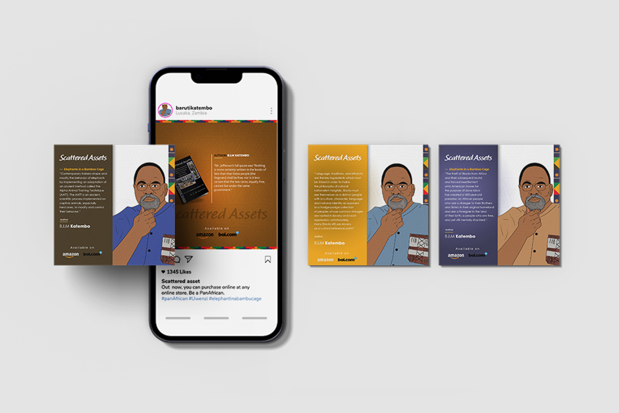 We designed book author Baruti Katembo’s social media promotional campaign for his book ‘Scattered Assets’. His book shares great insight on African history and how as brilliant minded Africans we can leverage off each other using technology as a tool for impactful synergies across the globe. This book is in-depth and features rich historical content, we would definitely recommend you give it a read. (insert link here)