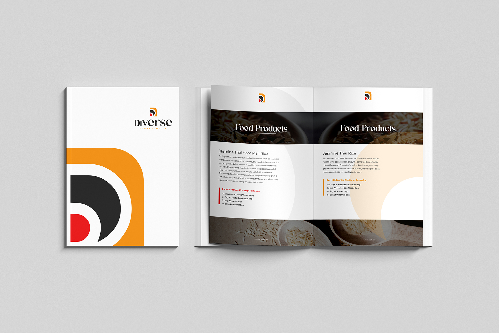 Colour and stripes came to mind as we conceptualize the ‘Diverse Foods’ now transitioned to ‘Diverse Mix’ brand. Using the ‘D’ in Diverse, we developed the icon which incorporated stripes and different colours. The font we selected felt playful, flavourful and slightly cultural which greatly symbolized the Diverse brand. The icon we crafted is what we used as a design element for the brand.