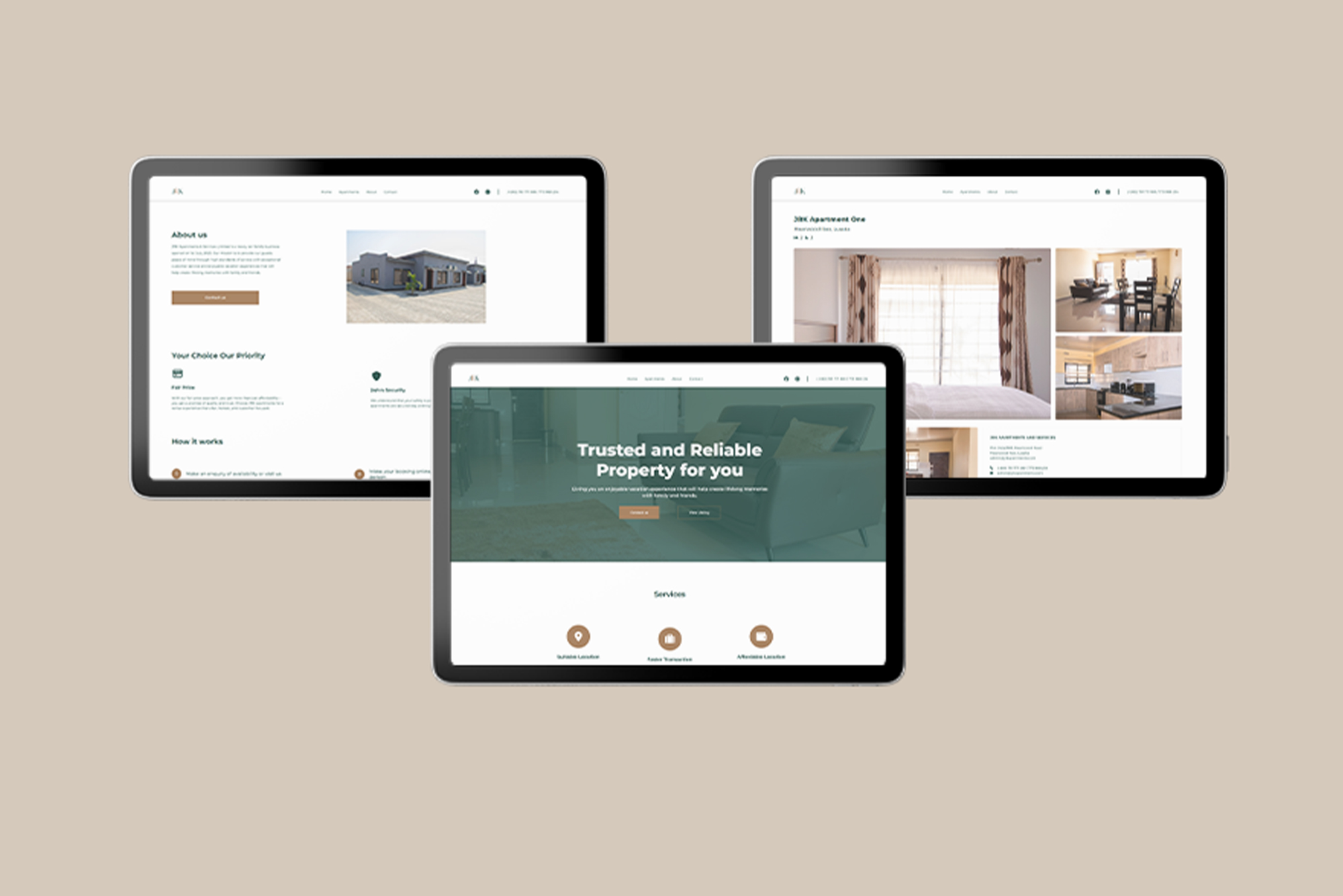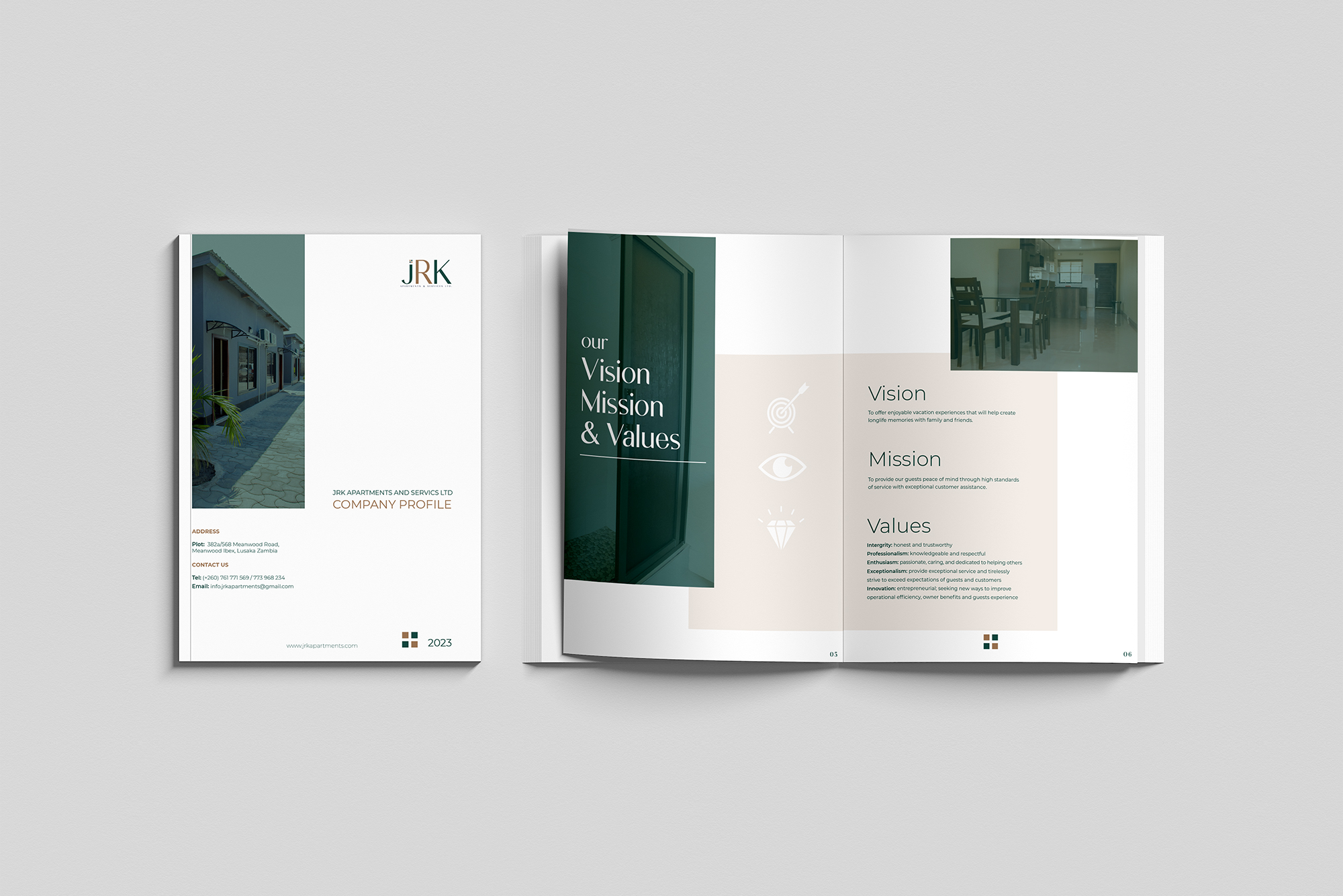Simple and Classic was the design approach for the JRK brand. In our concept, we wanted to represent housing so we used geometric shapes of four squares that depicted a window. This graphic minimal styled window we crafted is what became the icon for the brand. Our choice of font was more traditional giving it a classic approach.