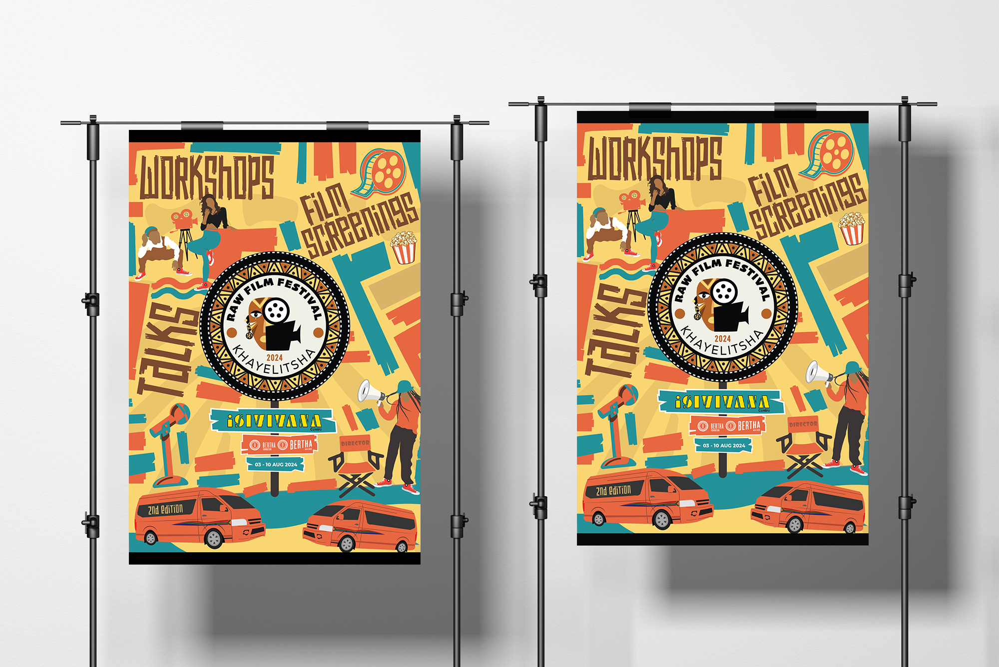 We we crafted this poster, we wanted people to think of the ‘Streets of Khayiletsha’, the care free feeling, the good vibes, the rawness and spirit of the people and just real life. We used vibrant colours, organic shapes, street signs, people, film related elements and African inspired typography to bring this across.